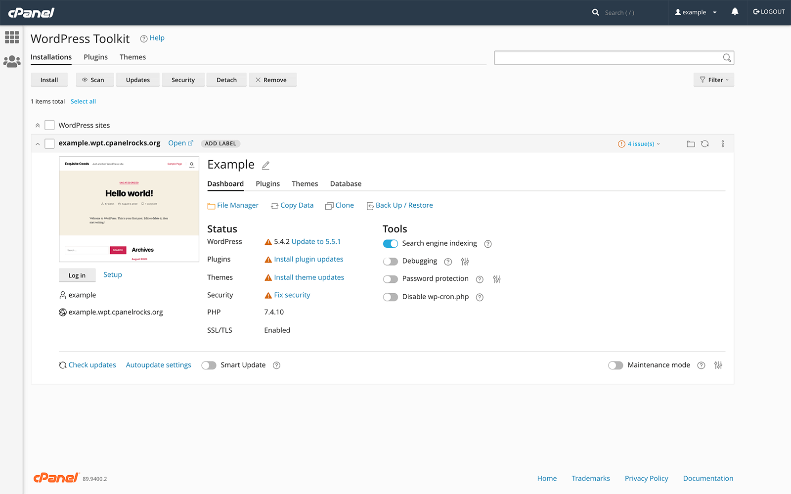 Take the guesswork, and the legwork, out of managing WordPress. In addition to everything you’d expect, from easy backup and restores to search engine index management and one-click WordPress login, you also get automatic Smart Updates, staging and cloning to easily duplicate or test existing websites, one-click security hardening, and so much more!